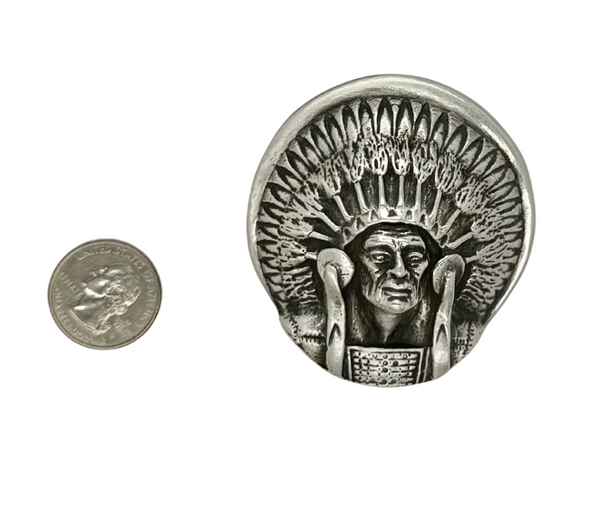 Handmade sterling silver chief belt buckle. Strap onto any belt.