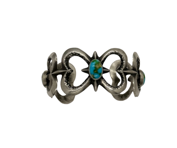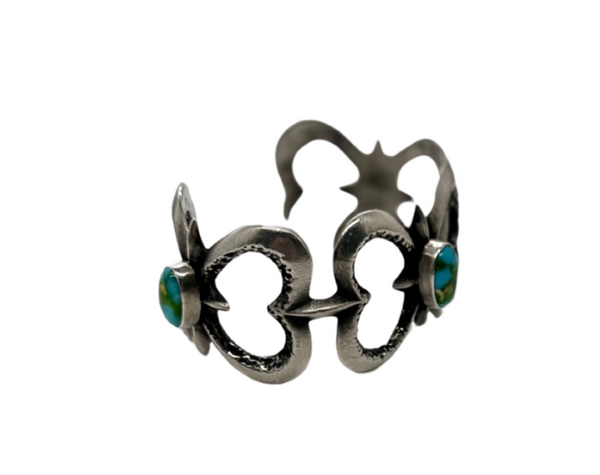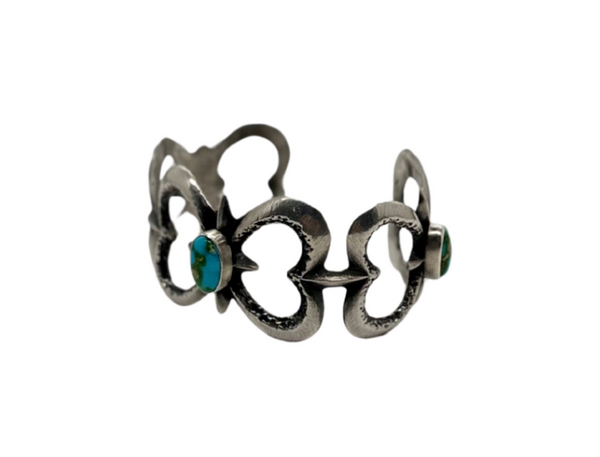 Handmade sterling silver flower concho cuff with three sonoran mountain turquoise stones totaling to 15cts.