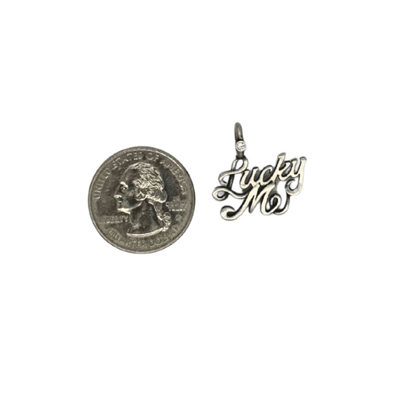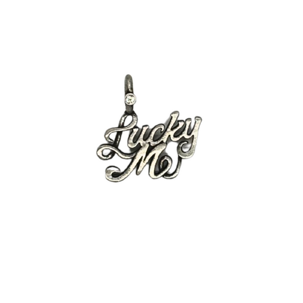 Handmade sterling silver or bronze "Lucky Me" charm with cz.