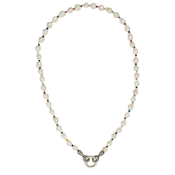 Rainbow Bead and Freshwater Pearl Charm Necklace