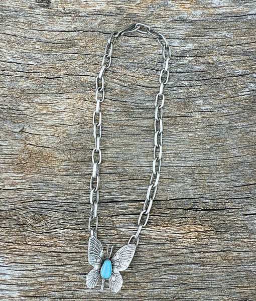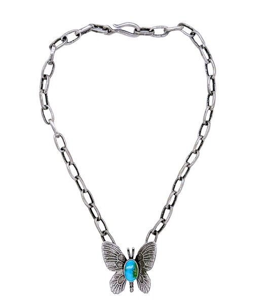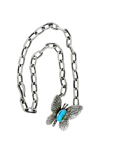 Handmade sterling silver melody chain with a beautiful turquoise butterfly pendant. Necklace shown is 17".