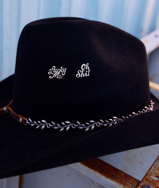 Handmade sterling silver or bronze cursive "Oh shit" hat pin. The pin is about 1" long.