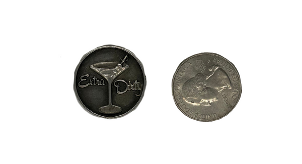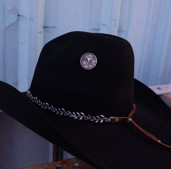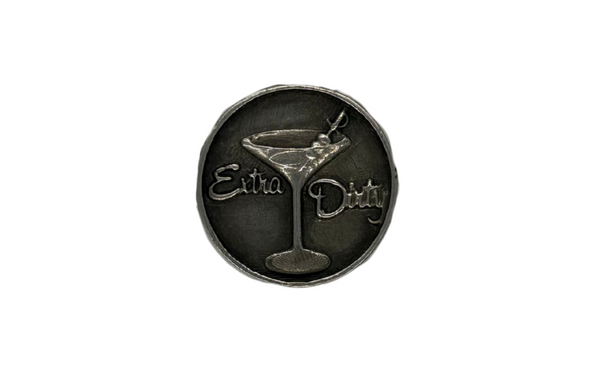 Handmade sterling silver or bronze "Extra Dirty" martini circle hat pin. The pin is about 1" round.