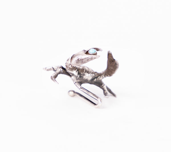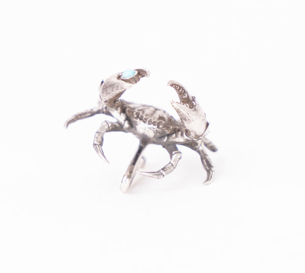 Handmade sterling silver or bronze crab hat token. Select turquoise or diamond.