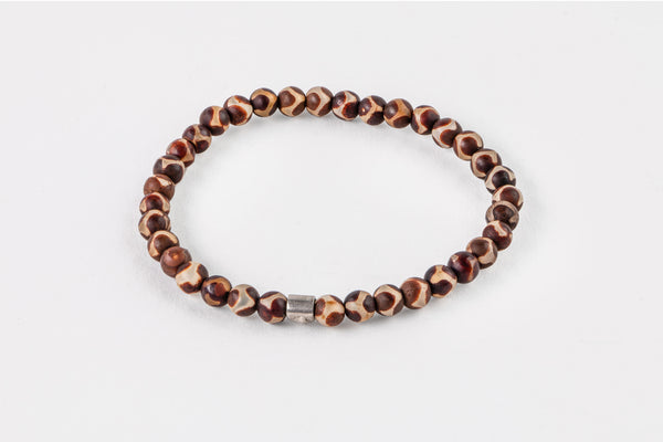 Hand strung giraffe beads with one sterling silver handmade bead.