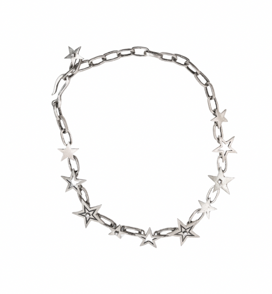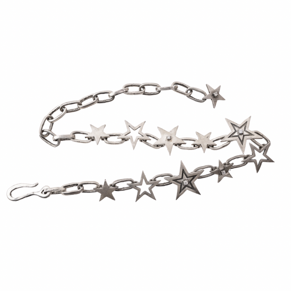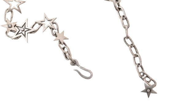 Handmade sterling silver stars with adjustable melody chain. The necklace contains six 2.5 mm natural diamonds throughout.