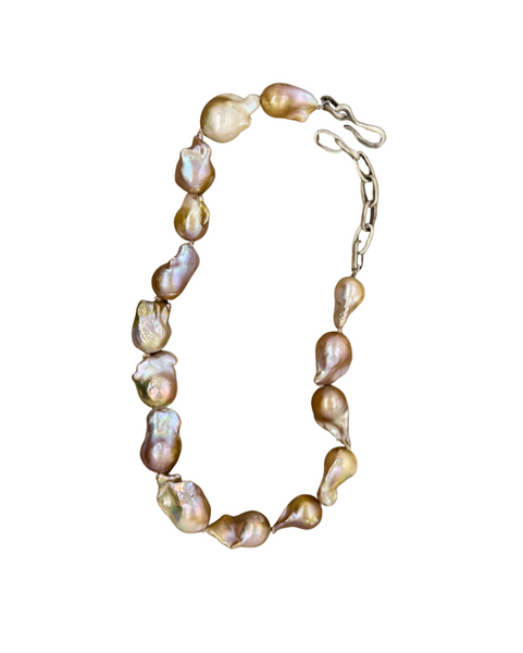 Baroque pearl necklace with handmade sterling silver Melody chain hook and extender at the back.