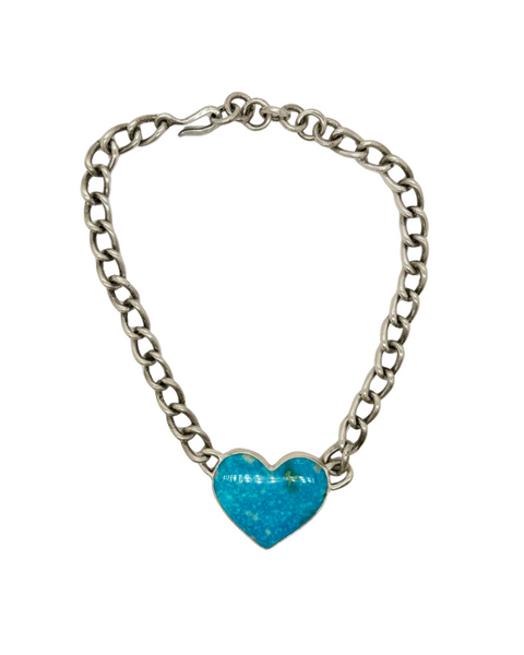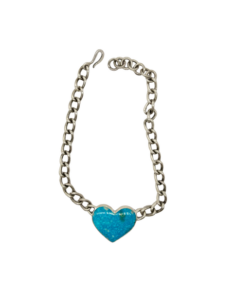 90ct Kingman Turquoise Heart stone with a handmade sterling silver Isabel chain at the back.