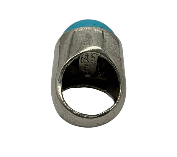 Hand carved sterling silver ring with a 30ct circle Kingman Turquoise stone.