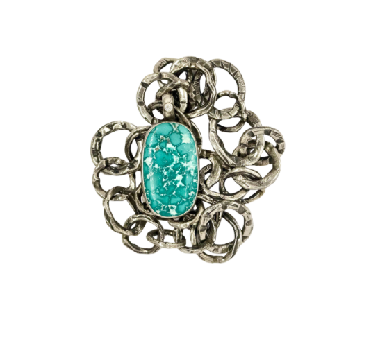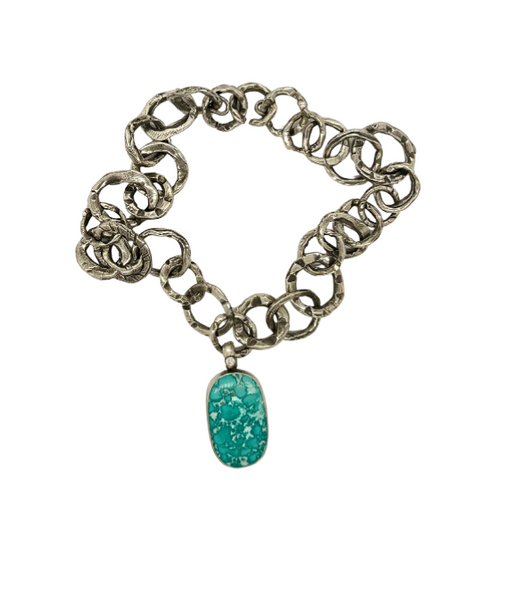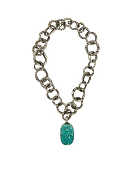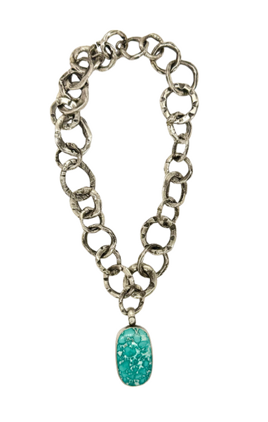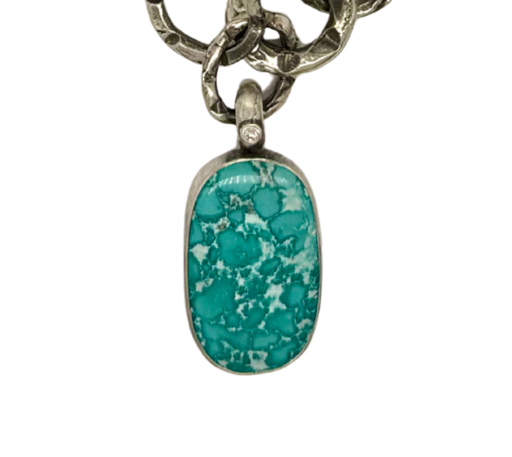 18" sterling silver OG chain with a 45 carat Kingman turquoise Birdseye stone and a 2.5 mm diamond on the bail.