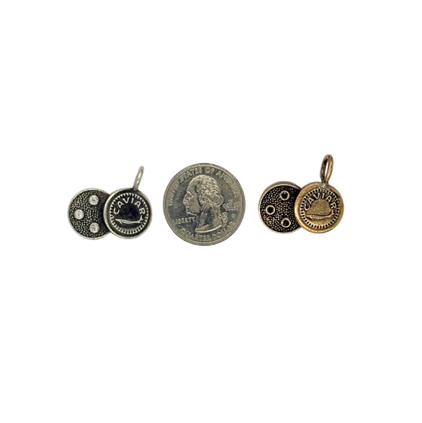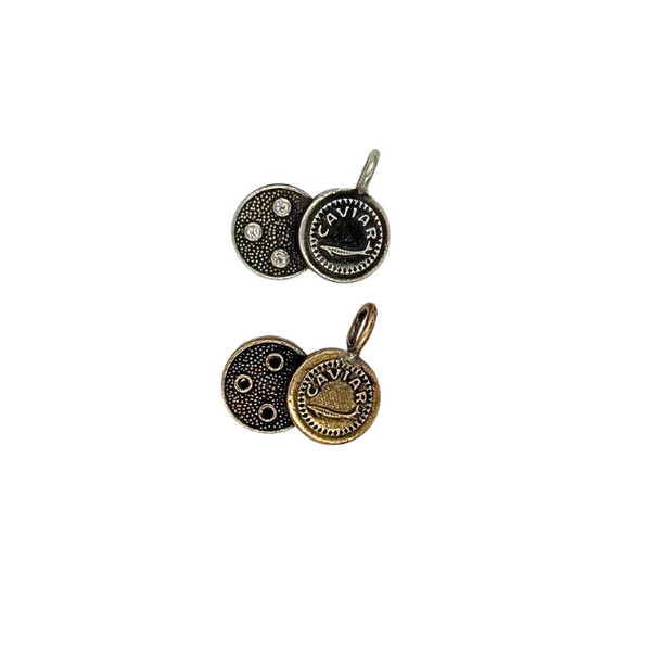 Handmade Caviar Tin charm - Available in bronze with black cz or sterling silver with white cz.