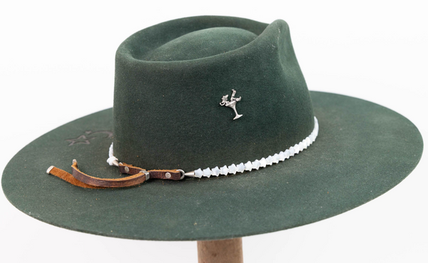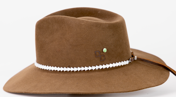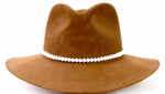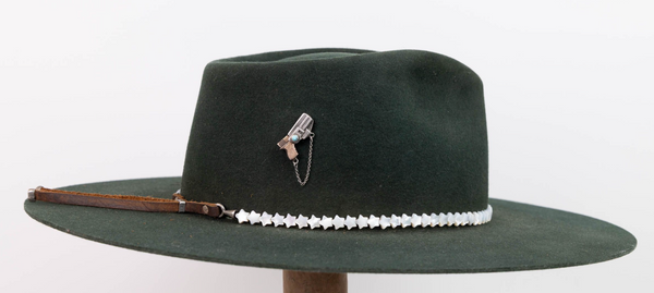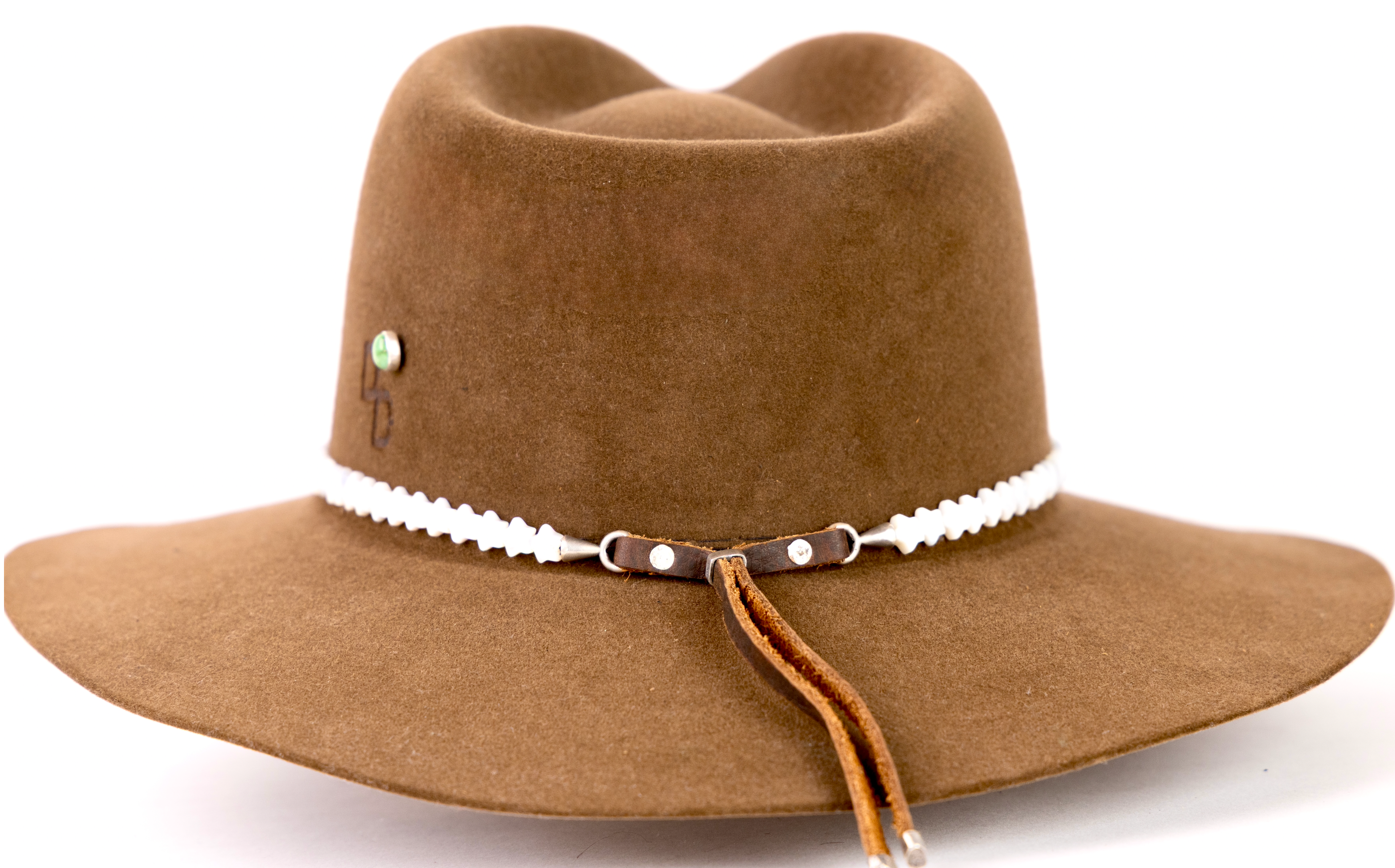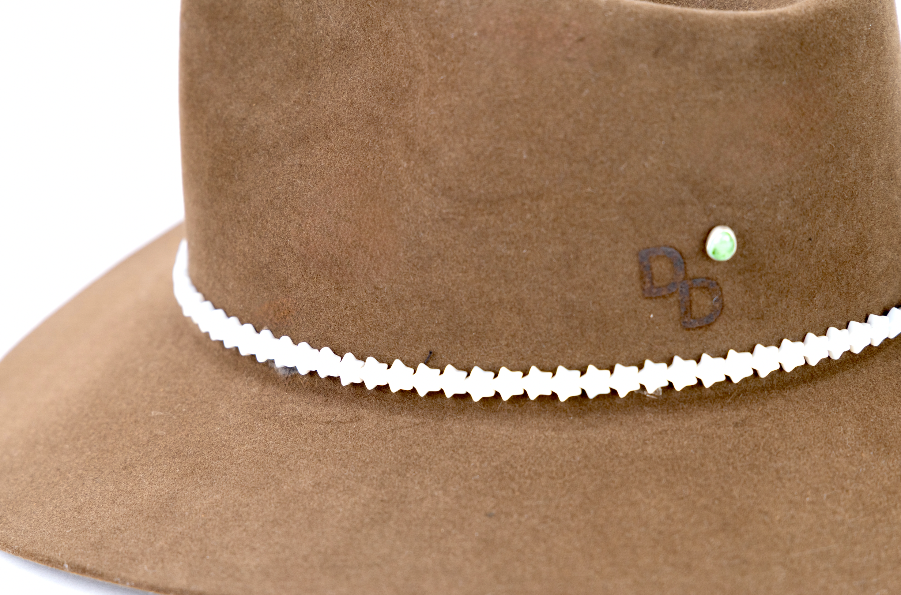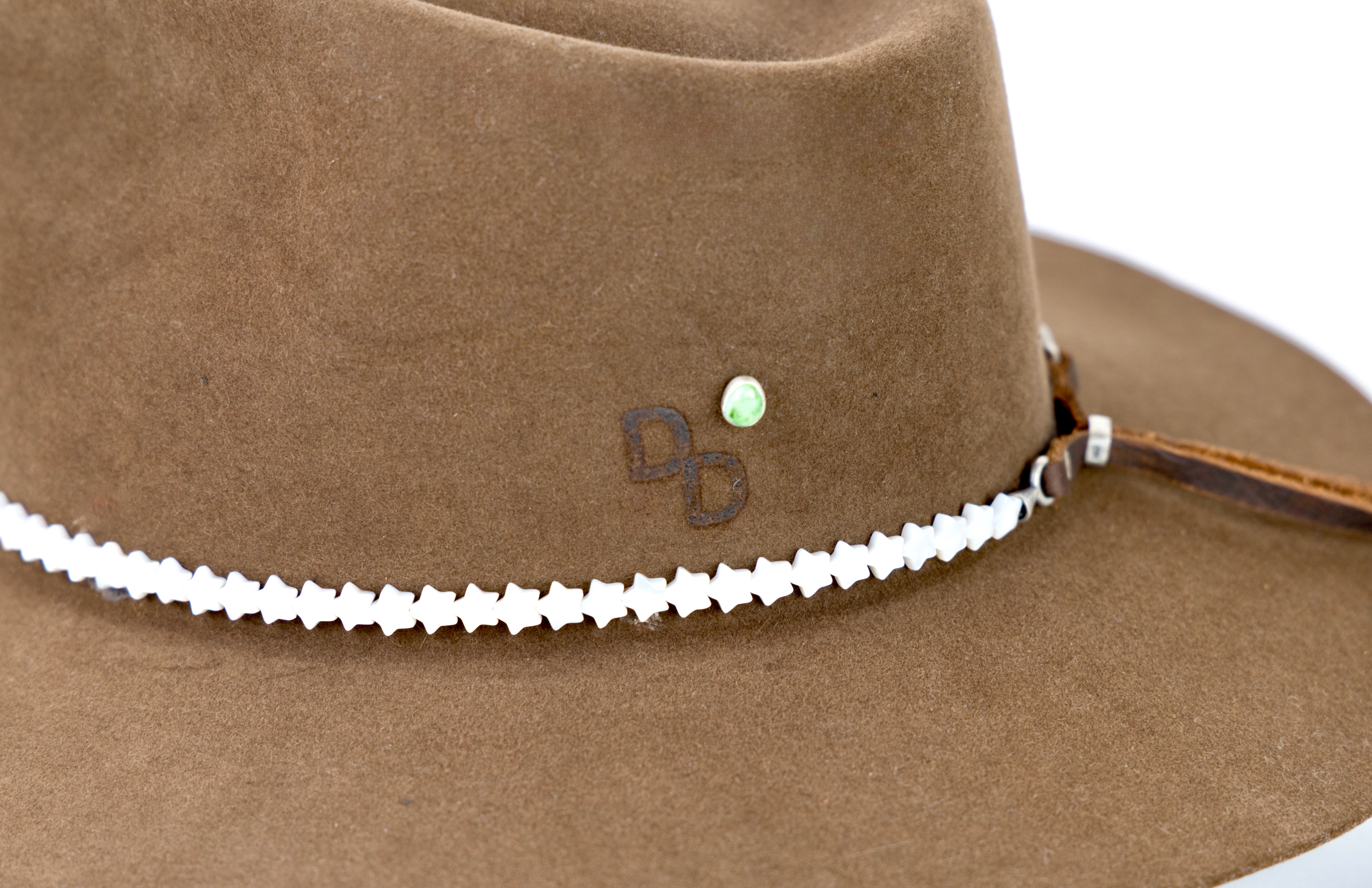 Hand strung Mother of Pearl Star Hat Band with real leather cinch closure.