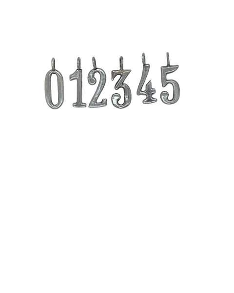 Handmade sterling silver or bronze number charm. Number options include 0-9.