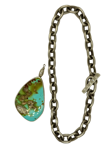 The length of necklace pictured in 18". This necklace is apart of our "add on pendant" collection. This chain is made to fit one of our pendants. Add a turquoise pendant to it for an extra cost as pictured.